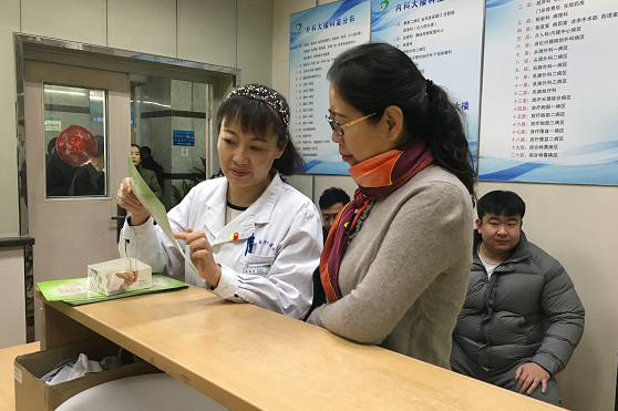 王海蓉向患者介绍住院流程